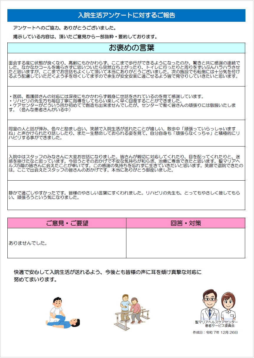 患者さん・ご家族から寄せられたご意見と当院からの回答内容をご報告します。